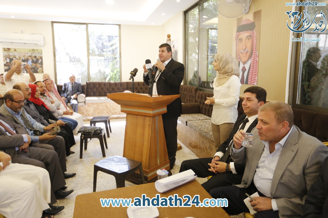 وبدأ اللقاءالذي شارك فيه كل من رئيس لجنة فلسطين النيابية النائب يحيى السعود ورئيس كتلة الاصلاح النيابية النائب مجحم الصقور ورئيس اللجنة الادارية النائب خميس عطيه و النائب نجاح العزة و زوجة المناضل الفلسطيني الاسير مروان البرغوثي السيدة فدوى البرغوثي بالسلام الملكي وتلاوة سورة الفاتحة على ارواح الشهداء