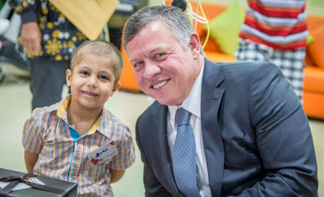 علامات فرح وسرور اعتلت وجوه أطفال مركز الحسين للسرطان، وهم يستقبلون جلالة الملك عبدالله الثاني، الذي آثر أن يزورهم في صبيحة أول أيام عيد الأضحى المبارك، للاطمئنان على أحوالهم الصحية، ونوعية الخدمة والرعاية الطبية المقدمة لهم.
