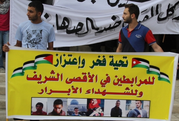 نفذ نشطاء السبت٬ اعتصاماً تضامنياً مع أصغر أسير أردني في سجون الاحتلال الإسرائيلي بمشاركة والده أمام مجمع النقابات المهنية في عّمان متسائلين عن دور الحكومة الأردنية تجاهه.