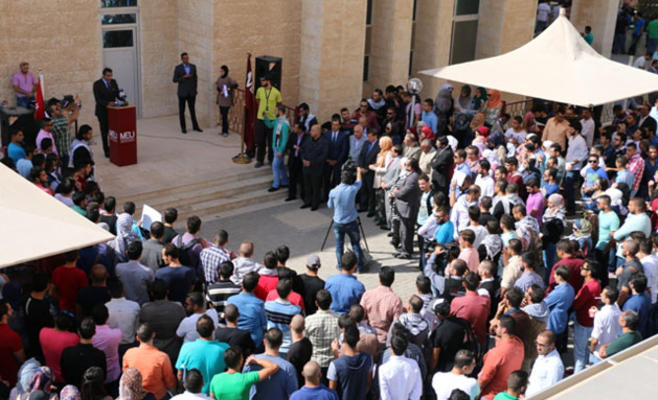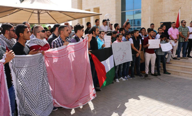 نظم طلبة جامعة الشرق الأوسط اليوم الثلاثاء، وقفة تضامنية قال القائمون عليها "إنها لدعم انتفاضة الأهل في فلسطين الذين يتعرضون لأبشع الاعتداءات الصهيونية".