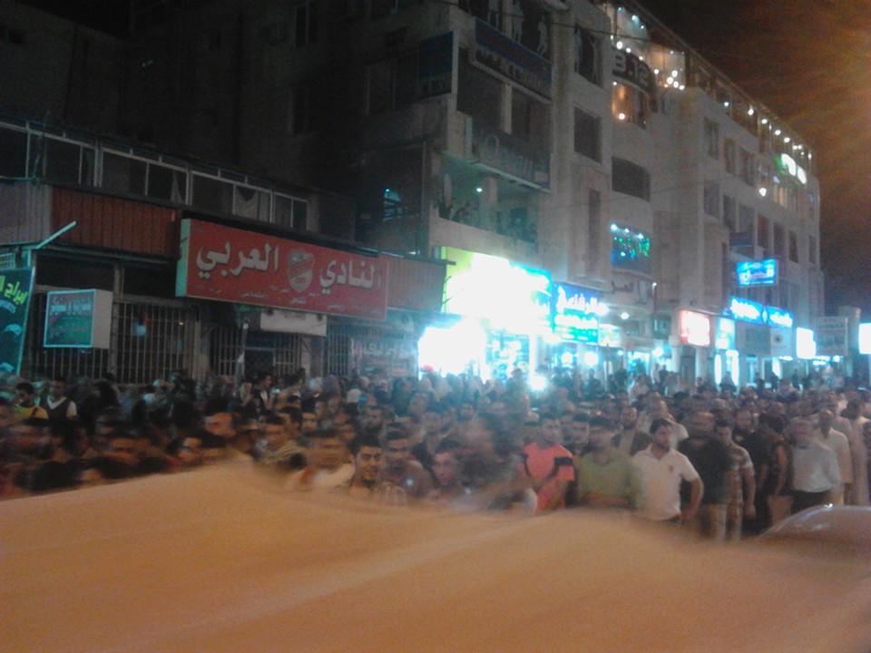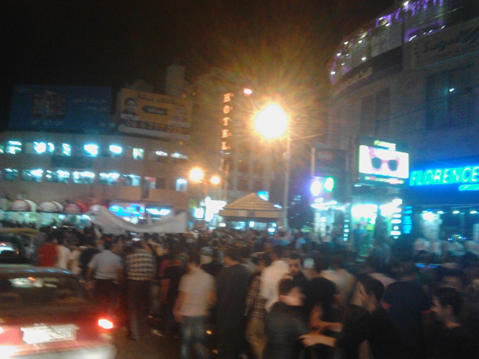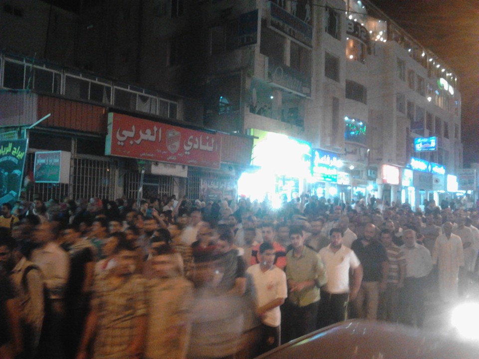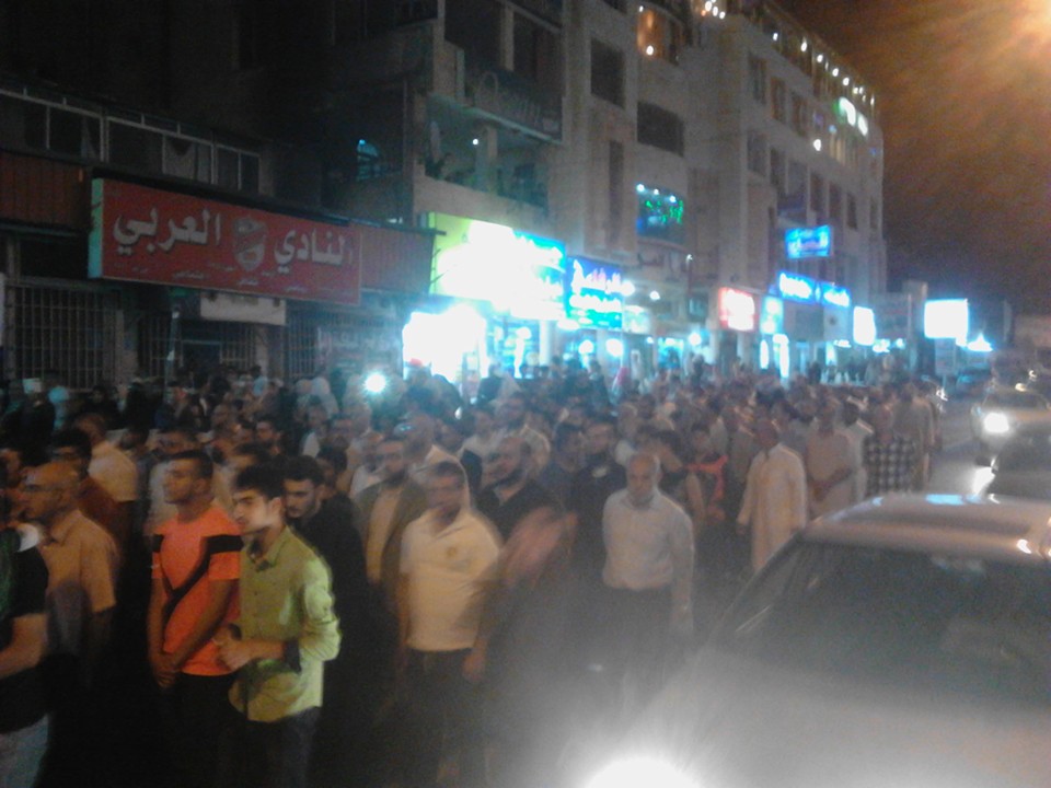 رصد - انطلق المئات في مسيرة حاشدة جابت شوارع اربد من مسجد الجامعة بعهد صلاة العشاء بدعوة من جماعة الاخوان المسلمين في اربد وتحت شعار " نصرة للأقصى ودعما لجهاد المقدسيين ".