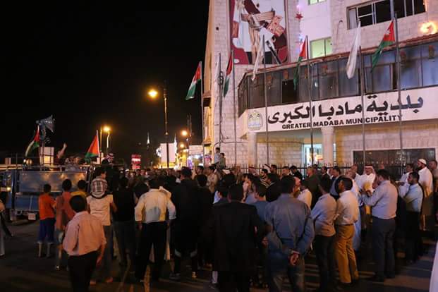 اقامت الحركة الإسلامية في مادبا وقفة احتجاجيه على دوار البلدية مقابل مبنى البلدية لنصرة فلسطين والأقصى الذي يعاني من قهر الاحتلال الاسرائيلي والقتل الذي يرتكبه جيش الاحتلال ضد المواطنين الفلسطينيين