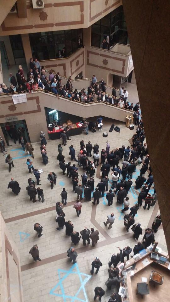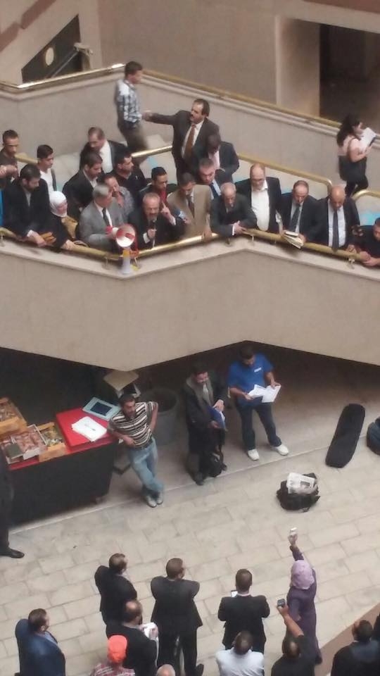 ونفذ المحامون اليوم توقفا عن العمل والمرافعات لمدة ساعة في جميع محاكم المملكة تضامنا مع الشعب الفلسطيني في مقاومته ضد المجازر التي يرتكبها العدو الصهيوني في فلسطين المحتلة.