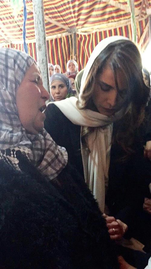 أوﺿﺤﺖ اﻟﻤﻠﻜﺔ راﻧﻴﺎ ﻟﺼﺤﻴﻔﺔ دﻳﻞ ﻣﻴﻞ أن ﻣﻦ أﺻﻌﺐ اﻟﻤﻮاﻗﻒ اﻟﺘﻲ ﺗﻌﺮﺿﺖ ﻟﻬﺎ ﻫﻮ ﺧﻼل ﻣﻘﺎﺑﻠﺘﻬﺎ ﻟﺰوﺟﺔ اﻟﺸﻬﻴﺪ اﻟﺒﻄﻞ ﻣﻌﺎذ اﻟﻜﺴﺎﺳﺒﺔ ﻓﻲ ﺑﻴﺖ اﻟﻌﺰاء ﺑﺎﻟﻜﺮك.