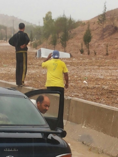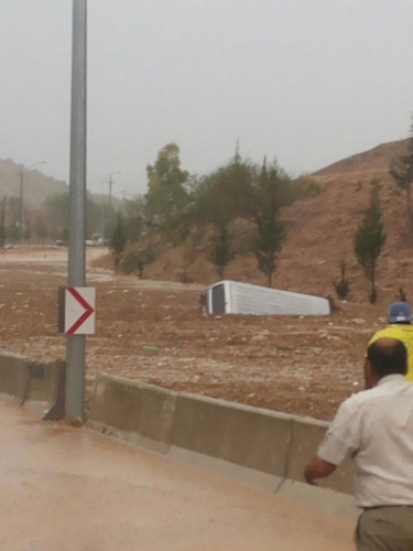 تدهور حافلة بسبب الأمطار - صور