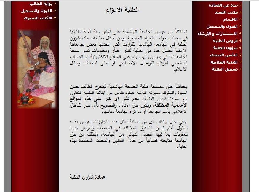 أصدرت عمادة شؤون الطلبة في الجامعة الهاشمية قراراً منعت من خلاله الطلبة نشر أي خبر يتعلق بالجامعة الهاشمية على حسابهم الشخصي على مواقع التواصل الإجتماعي أو المواقع الإلكترونية.