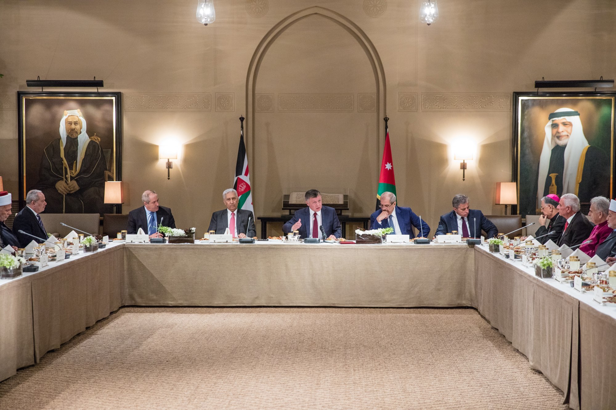 وحضر اللقاء رئيس الوزراء، ورئيس الديوان الملكي الهاشمي، ونائب رئيس الوزراء وزير الخارجية وشؤون المغتربين، ومدير مكتب جلالة الملك، ووزير الأوقاف والشؤون والمقدسات الإسلامية.