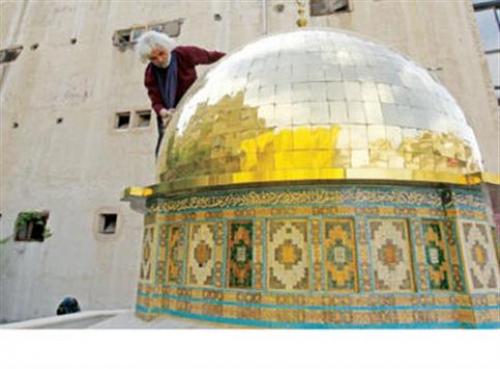 رصد - أنهى الفنان نظام نعمة اللمسات النهائية لمجسة مسجد قبة الصخرة المشرفة على سطح منزله في عمان .وقال نعمة أنه يطمح أن تقوم الحكومة الأردنية بوضع تصميمه في مكان مناسب لما يحمله من رسالة من كل العرب أن القدس لجميع العرب .
