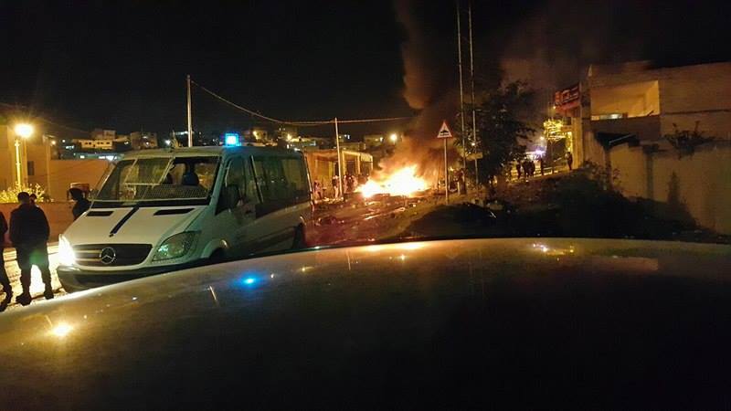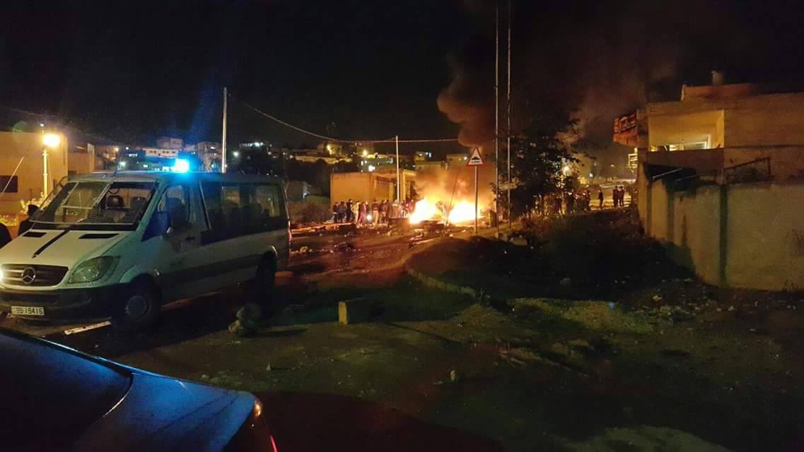 عقب جريمة "جرش" .. محتجون يغلقون طريق "دير الليات" - صور