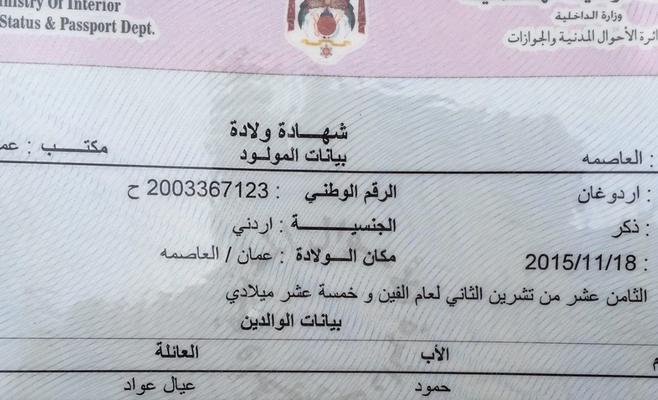 أردني يطلق على مولوده الجديد إسم "أردوغان"