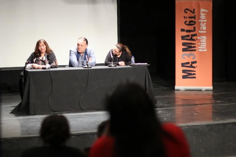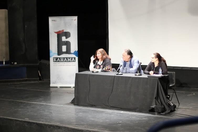 وعرضت مقاطع من فيلمها "عليهم أن يقتلونا أولا" والمرشح لجائز "ريشة كرامة"، ويتحدث الفيلم عن فرقة موسيقية في أحد مخيمات اللاجئين.