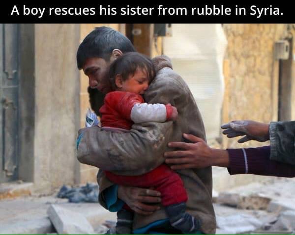 الطفل الظاهر مع شقيقته في الصورة نجا من الموت بحسب وكالة "رويترز"، فيما نُشر مقطعٌ مصوّرٌ للعائلة على موقع يوتيوب في ذات اليوم وهم يبكون أحباءهم الذين قضوا في القصف.
