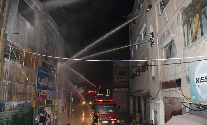 حريق ضخم يلتهم محلين ومخزن في القويسمة - صور