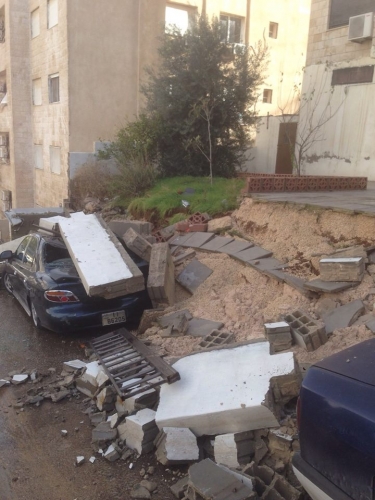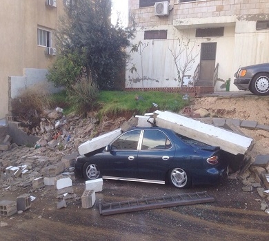 إنهيار سور في الجاردنز وتضرر عدد من المركبات - صور
