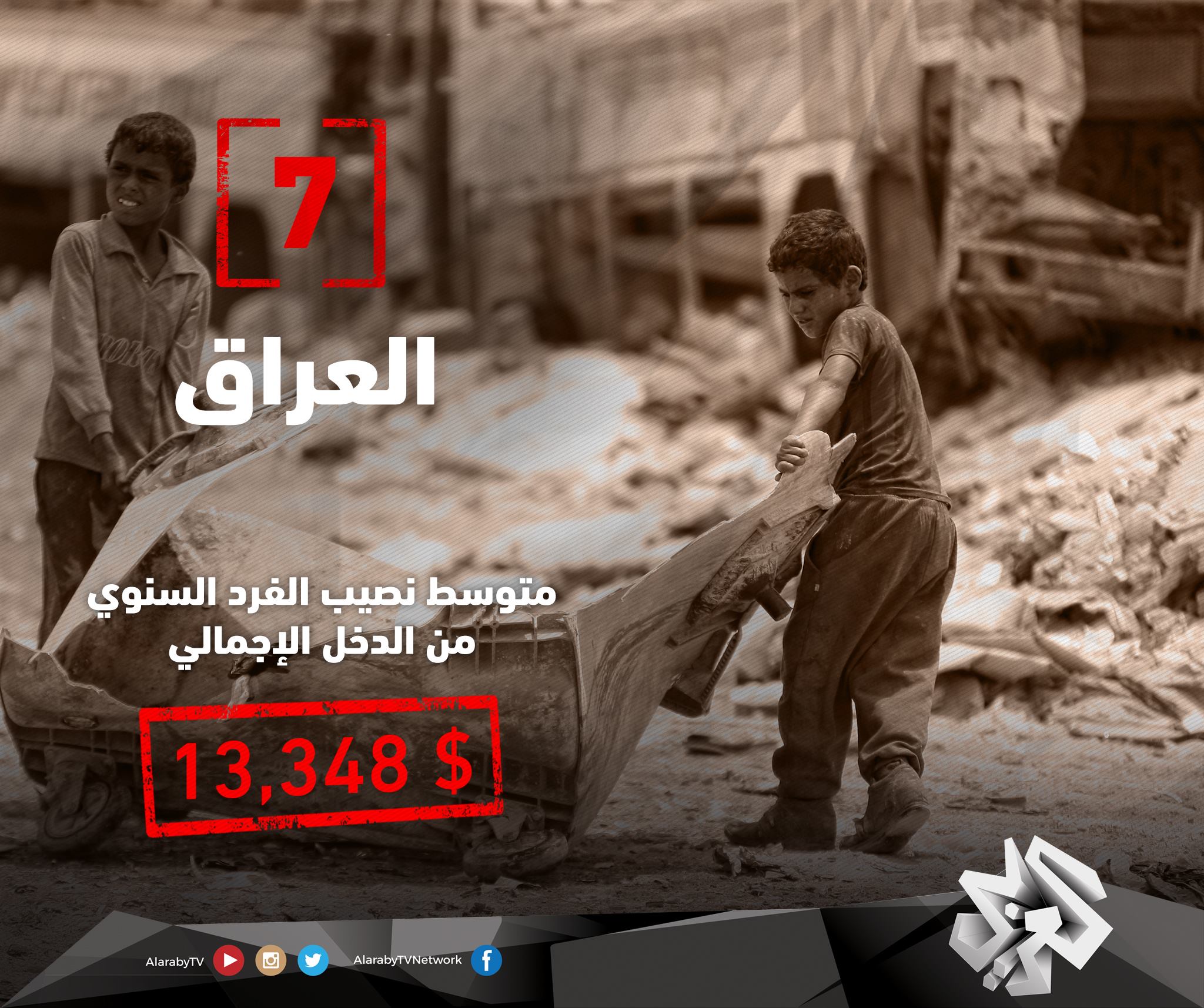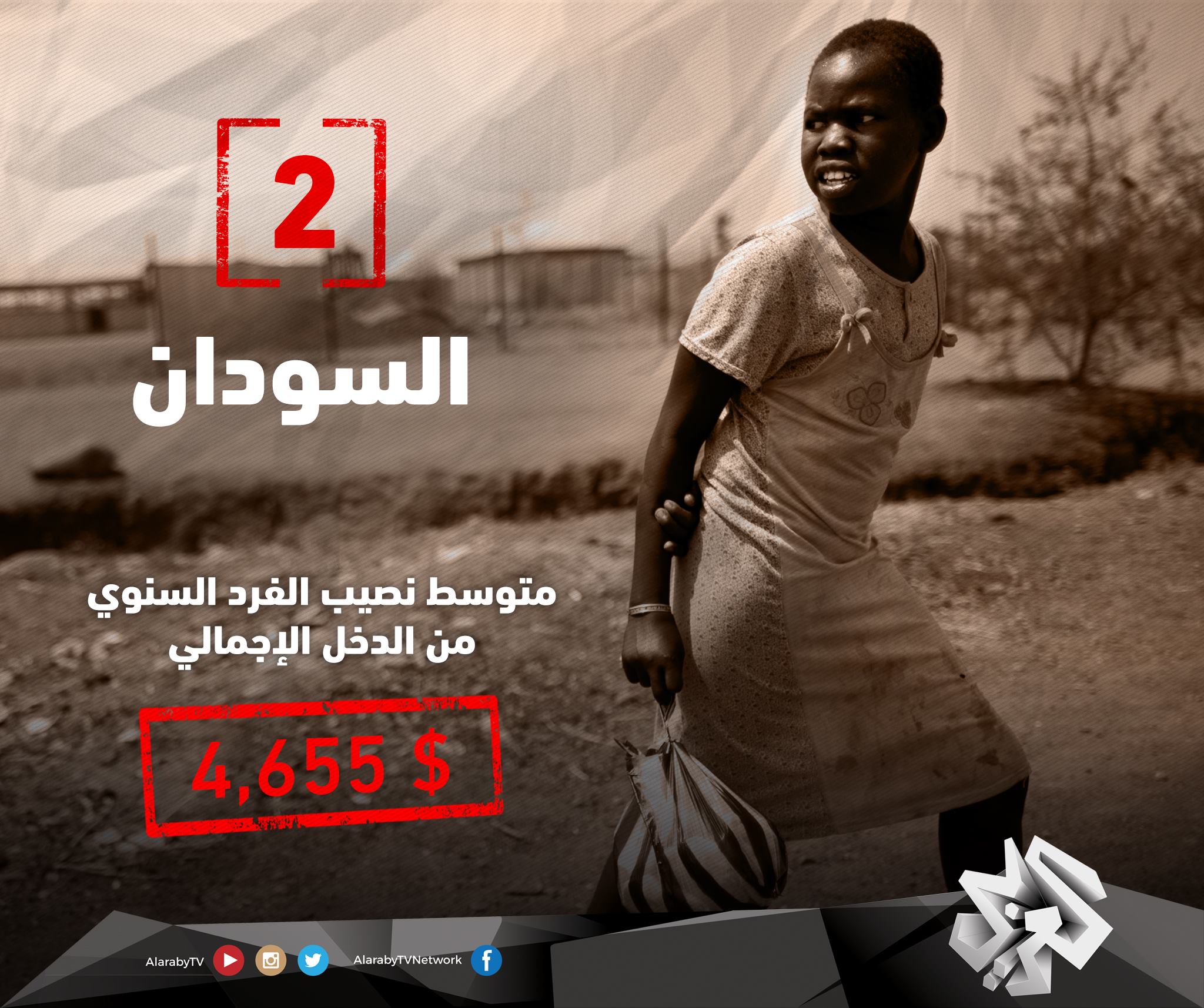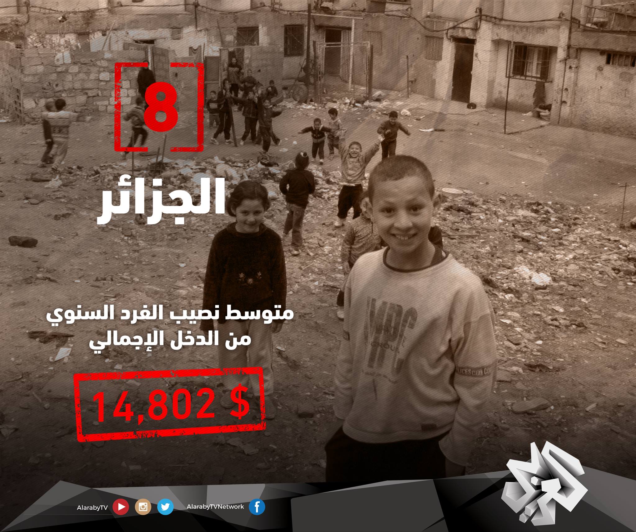 أفقر 10 دول في #الوطن_العربي عام 2015 (بناءً على نصيب الفرد من دخل الدولة الإجمالي).
