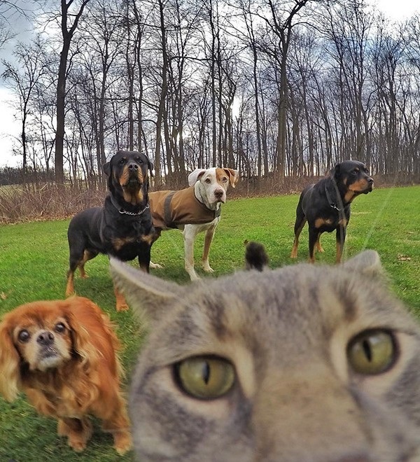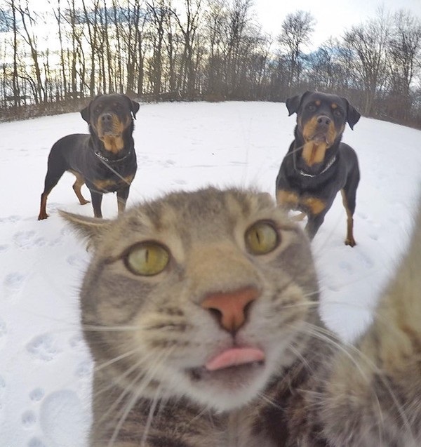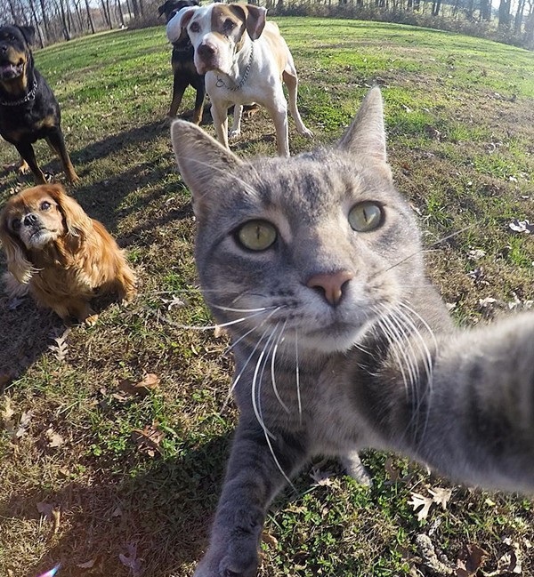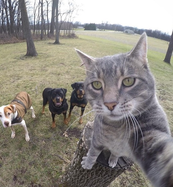 نشر احد نشطاء على تطبيق "إنستجرام" صورا لقطه بعدما تفاجئ انه إلتقط لنفسه صور "سيلفي" وهو برفقة الكلاب التي يربيها صاحبه وكانهم مجموعة من الاصدقاء الخارجين في رحلة .