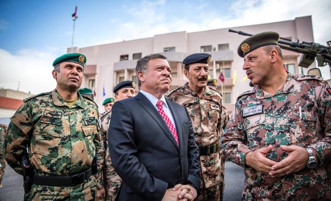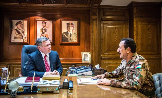 زار جلالة الملك عبدالله الثاني، القائد الأعلى للقوات المسلحة، اليوم الثلاثاء، القيادة العامة للقوات المسلحة الأردنية - الجيش العربي، حيث كان في استقبال جلالته لدى وصوله مستشاره للشؤون العسكرية، رئيس هيئة الأركان المشتركة الفريق أول الركن مشعل محمد الزبن، وفقا لصحفة الديوان الملكي على مواقع التواصل الاجتماعي.