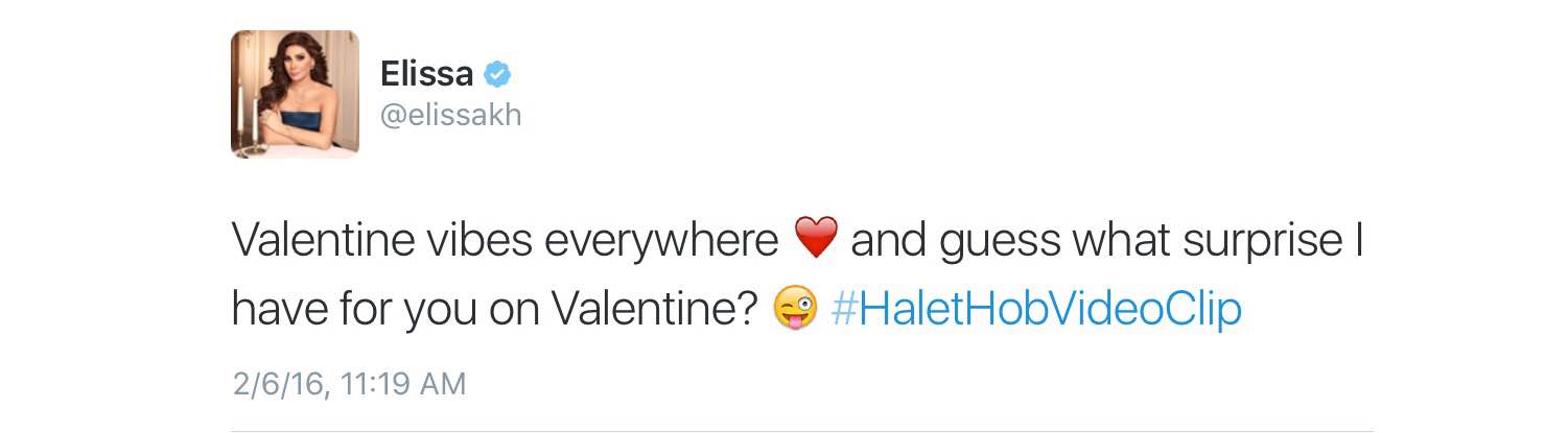 الجميع ينتظر ما قد يفعله الفنانون لجمهورهم في المناسبات، بعيداً ربما من الحفلات التي تكلّف غالياً وليس في استطاعة الأغلبية حضورها. واليوم، غرّدت الفنانة #إليسا على حسابها عبر "تويتر"، لتعلن عن مفاجأة لجمهورها في عيد الحب، عبارة عن فيديو كليب أغنية "حالة حب"، وهي أغنية تحمل اسم ألبومها الأخير، رومانسية، جميلة، تطفح بالمشاعر. وكانت اليسا نشرت صورة من الكليب، بمثابة اعلان على أنه سيبصر النور قريباً، وها هي اليوم تقدّمه هدية لجمهورها الذي تحبّه ويحبّها.
