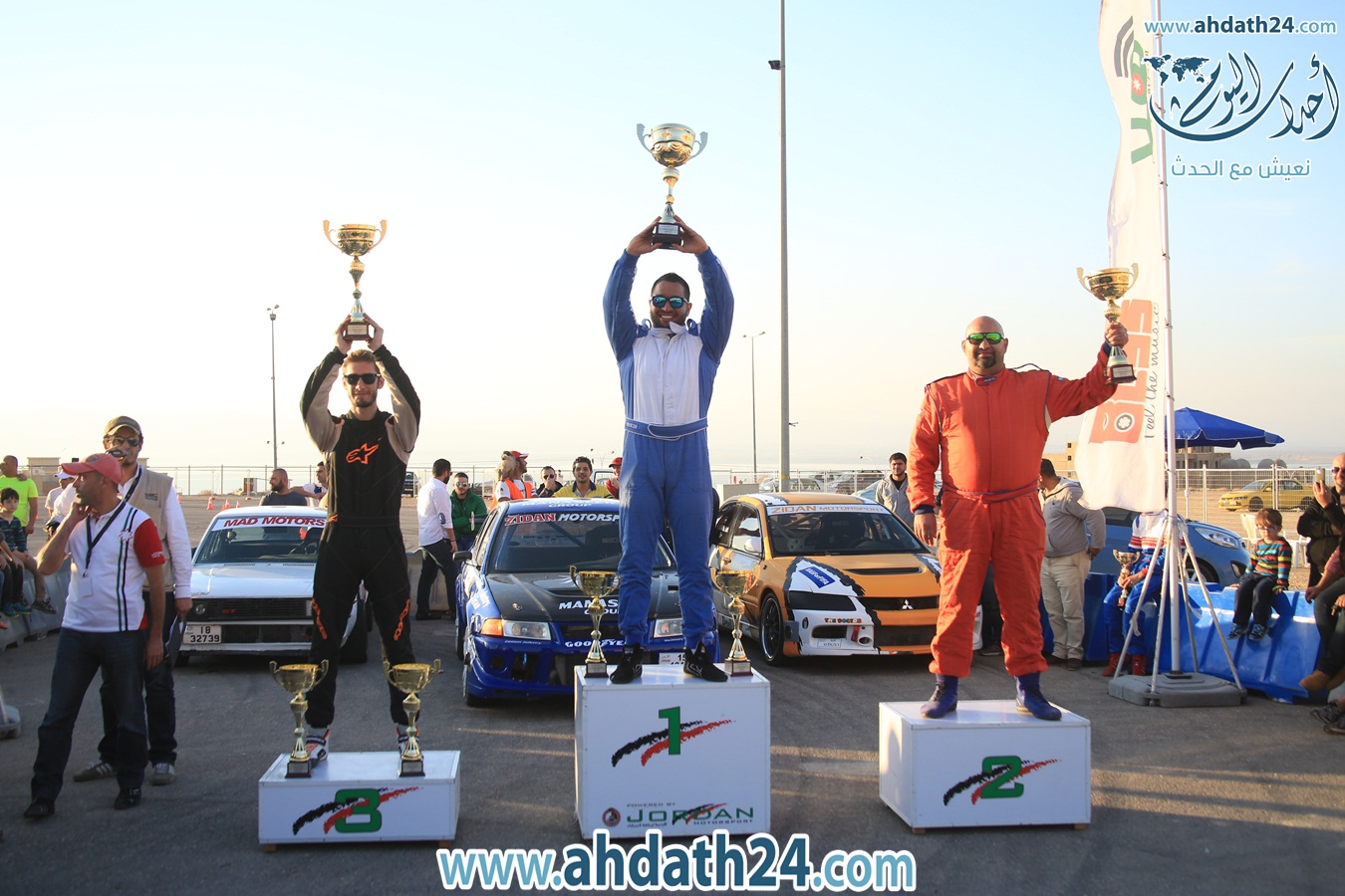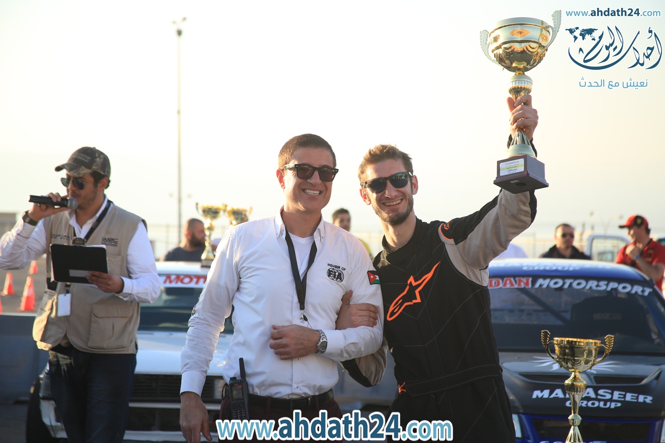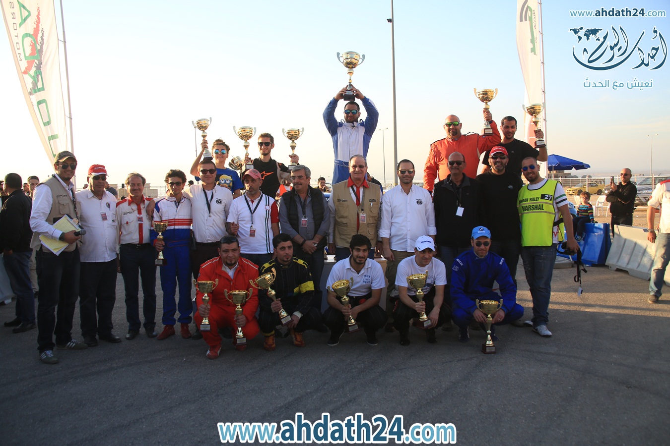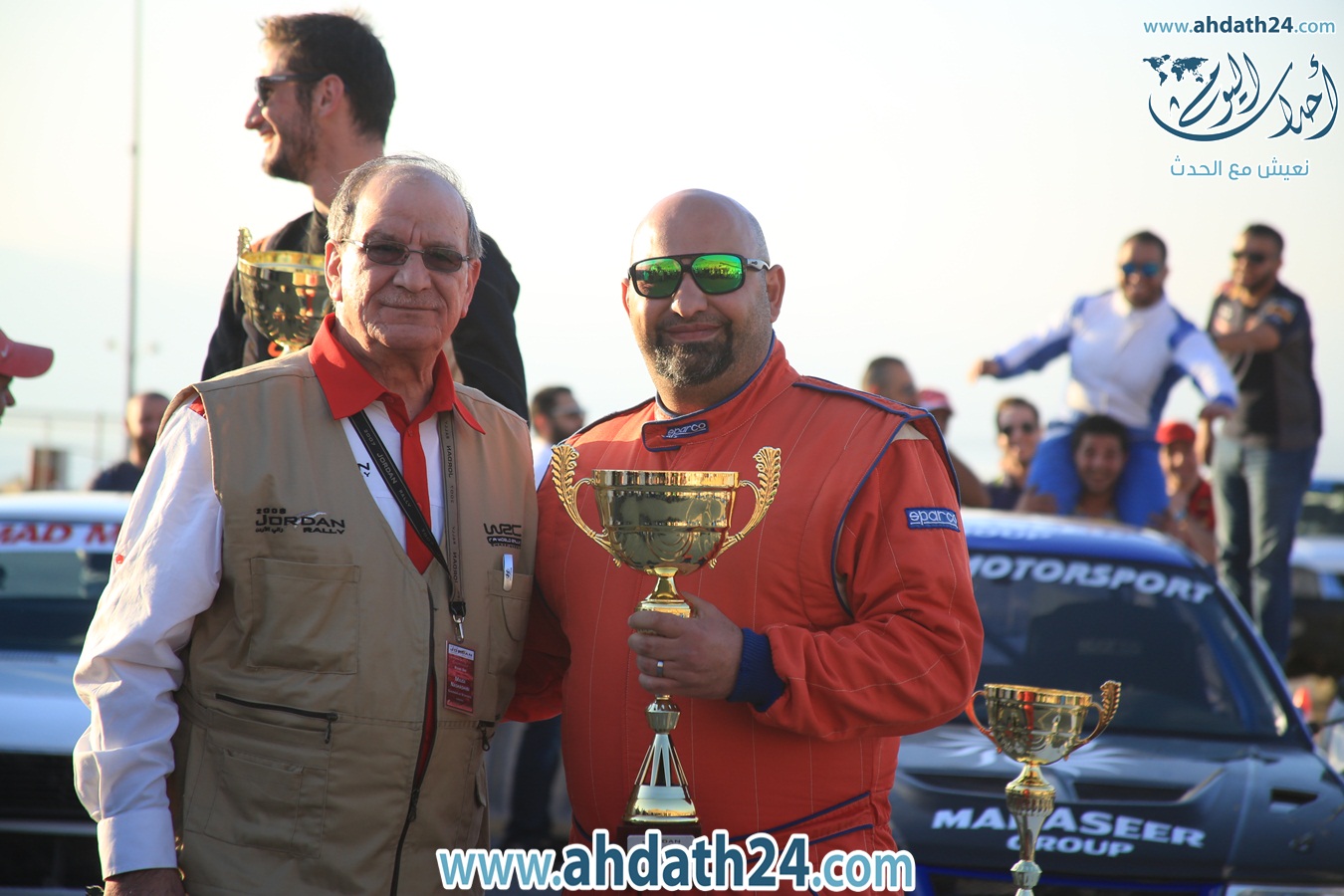 وفي نهاية السباق توج اعضاء هيئة التحكيم ومدير السباق عمر زعرور وعثمان ناصيف المدير التنفيذي في الاردنية لرياضة السيارات الفائزين بالسباق .