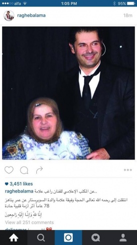 نشر السوبر ستار راغب علامة صورة له مع والدته ليعلن للجميع وفاة ست الحبايب. وكتب المكتب الإعلامي لعلامة على حسابيه على موقعي تويتر وفايسبوك: "انتقلت إلى رحمه الله تعالى الحجة وفيقة علامة والدة السوبرستار عن عمر يناهز 78 عاماً أثر أزمة قلبية حادة " .