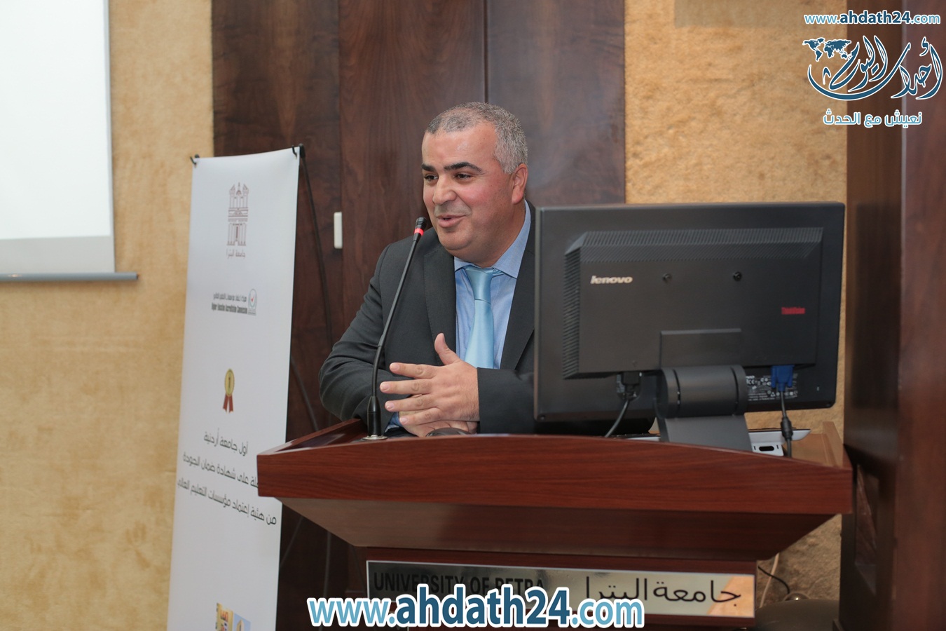 وقال "تتشرف الجامعة اليوم بحضور سموكم لمشاركتنا عرض كلية العمارة والتصميم لمشاريع طلبة قسم هندسة العمارة، ضمن دراستهم لمساق هندسة وتنسيق المواقع، والتي حرصنا فيها على التوجه لتنمية البيئة الحضرية وتوجيه الوعي لأهمية البيئة الخضراء والمستدامة من خلال تصاميم الطلبة "