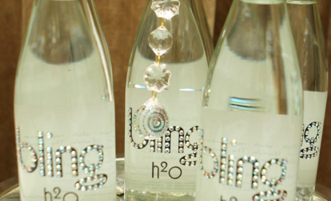 سعر زجاجة مياه Bling H2O يتراوح بين 45-75 دولاراً، ولا يزعم منتجو هذه المياه باهظة الثمن أن بها أي إضافات تتسبب في ارتفاع سعرها، غير أنه يتم معالجة المياه بصورة أكبر من زجاجات المياه العادية، بالإضافة إلى أنها مستخرجة من الينابيع الطبيعية في داندريدج بولاية تينيسي، وهي من ابتكار المؤلف والمنتج كيفين بويد.