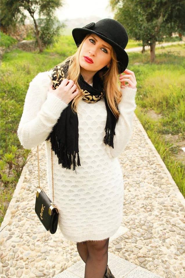 أرتدت كنزة فى هذه الصور فستان ابيض قصير ووضعت على رقبتها إيشارب سوداء وقبعة سوداء فى صور تبرز جمالها الجزائري الساحر .