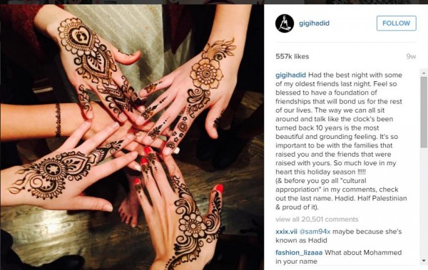 ثمانية أسابيع كاملة مرّت على صورة أشهر عارضة أزياء في العالم حالياً جيجي حديد، التي رفعتها على حسابها الخاص على "إنستغرام". في الصورة مجموعة من الأيدي وعليها رسوم بالحنّاء.