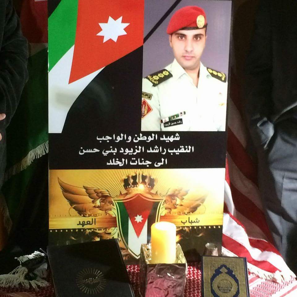 أقام شباب العهد الأردني في كاليفورنيا في الولايات المتحدة الأمريكية بيت عزاء عن روح شهيد الوطن والواجب النقيب راشد الزيود بني حسن .