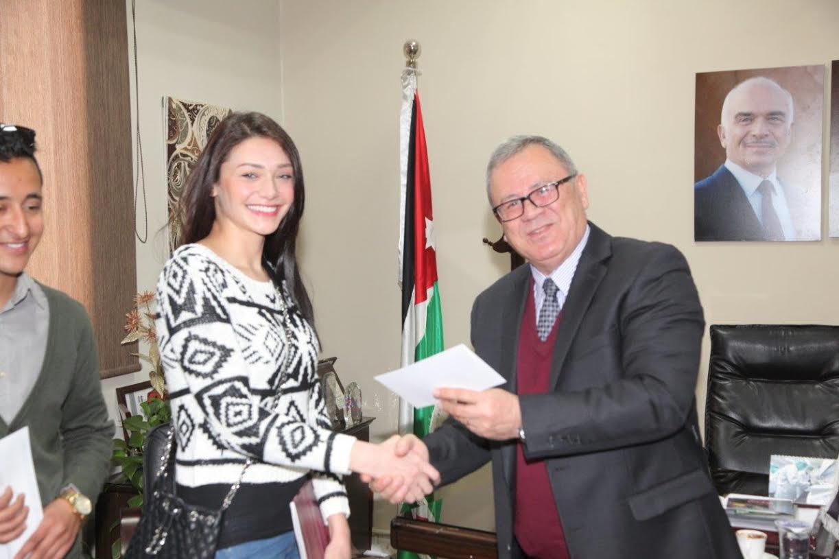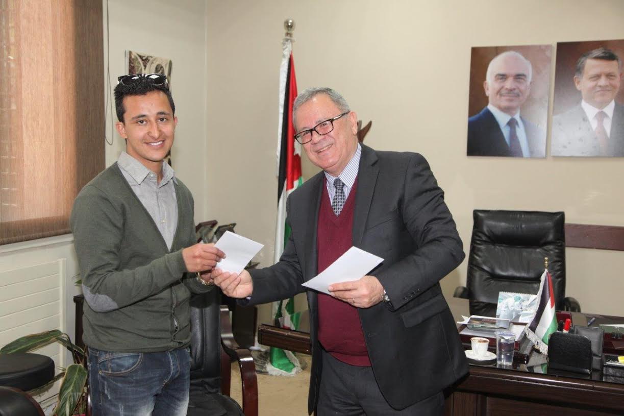 كرم رئيس جامعة البترا أ.د مروان المولا فريق الجامعة الفائز بمسابقة المناظرات الأولى للجامعات الأردنية، التي أقامها الاتحاد الأوروبي بالتعاون مع التحالف رشيد للنزاهة والشفافية.