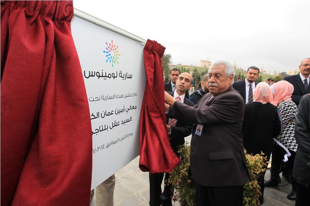 احتفل صباح اليوم برفع العلم الأردني على سارية لومينوس في باحة كلية القدس ، برعاية أمين عمان عقل بلتاجي بحضور محافظ العاصمة خالد ابو زيد ومدير المدينة المهندي عمر اللوزي وشخصيات سياسية وبرلمانية وعسكرية واجتماعية، ضمن احتفالات المملكة بالمناسبات الوطنية .