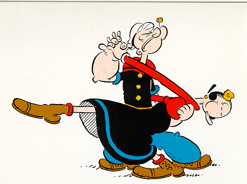 عدو باباي اللدود والدائم هو بلوتو وعندما يتشاجر مع أحد فإنه لا يستغني عن السبانخ لأنها تزيده قوة بينما زوجة باباي دائمة الصراخ عندما يختطفها أحد وصوتها عالي جدا وهي لا تتعرض للإختطاف إلا من بلوتو.