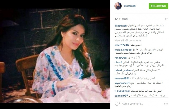وقالت الممثلة السورية عبر حسابها على تطبيق "انتسغرام": "للأسف الشديد اعتذرت عن المشاركة بباب الحارة الجزء الثامن وذلك لإنشغالي بتصوير مسلسل السلطان والشاه في مصر وتضارب مواعيد التصوير بين المسلسلين … كل التوفيق لأسرة العمل".