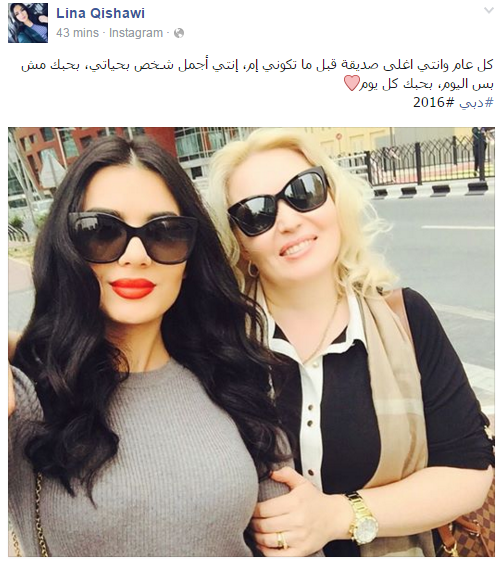 شاركت الاعلامية الفلسطينية لينا قيشاوي جمهورها عبر حسابها الشخصي على موقع التواصل "فيسبوك" صورة لوالدتها بمناسبة عيد الأم احتفالاً منها بهذا اليوم وتكريماً لجهودها إذ أرفقت الصورة بتعليق قالت فيه: