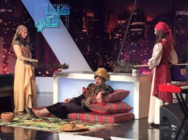 وقد نشر عادل كرم عبر صفحته الخاصّة على موقع التواصل الاجتماعي "فايسبوك" صورة له من كواليس البرنامج بدا فيها يستعد للسخرية من أحلام حيث أرفق الصورة بهاشتاغ #هيدا_حكي_يا_أحلام.