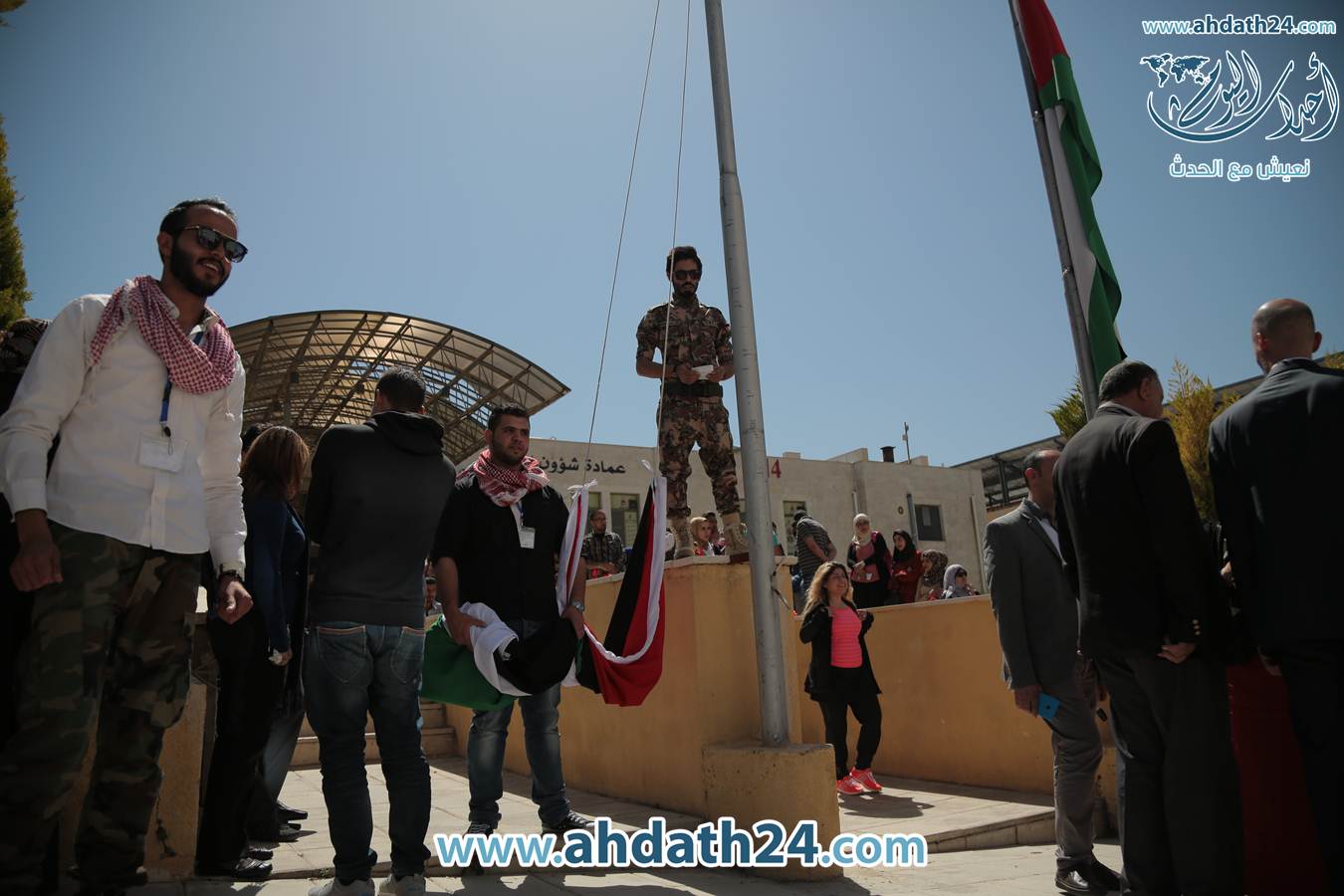 واشتمل الحفل على رفع لعلم الثورة العربية أمام مبنى عمادة شؤون الطلبة، وافتتاح معرض لهذه المناسبة يضم عددا من الشركات المشاركة في الاحتفال، إلى جانب عرض لفرقة أمانة عمان الكبرى، وتخلل الحفل مجموعة من الأغاني الوطنية.
