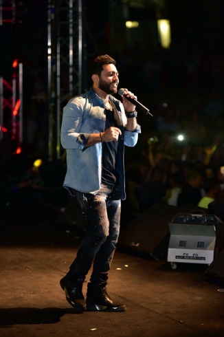 صعد نجم الجيل المسرح في تمام الساعة التاسعة مساء على أنغام أغنية “كل اللهجات”، وبسبب تدافع الجمهور نحو تامر بقرب المسرح ، داعبهم قائلاً :"هنغني حاجة هادية بقى عشان نقعد".