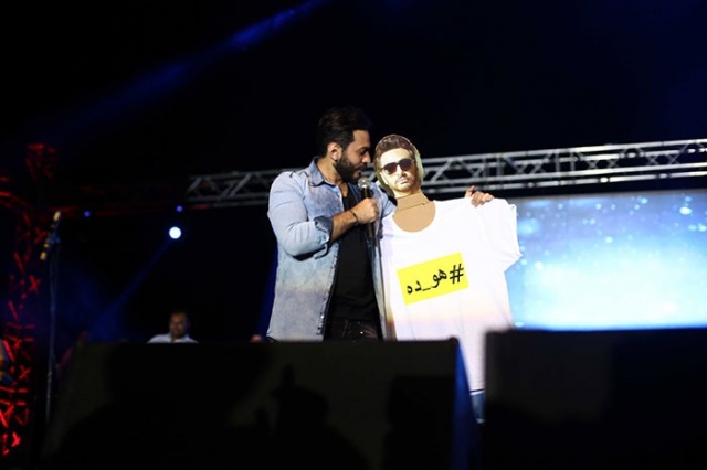 كما حرص تامر على تلبية طلب واحد من جمهوره مصاب بالسرطان على الصعود لالتقاط صورة تذكارية معه ،الأمر الذي اسعد الشاب ونال اعجاب الجمهور كما التقط تامر العديد من صور السيلفي مع جمهوره.
