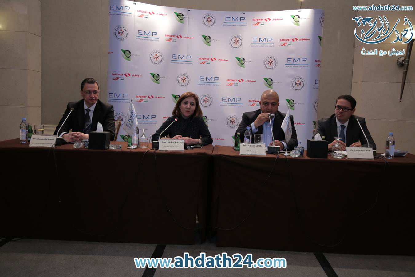 تصوير - عدنان قطيشات - أعلنت شركة إيميرجينغ ماركتس بايمنتس؛ الشركة الرائدة في صناعة تشغيل بطاقات الدفع الإلكترونية في الشرق الأوسط وأفريقيا، خلال المؤتمر الصحفي الذي عقد يوم الثلاثاء في فندق الفورسيزونز عمّان، عن إطلاق خدمة قناة دفع جديدة لنظام عرض وتحصيل الفواتير الكترونياً "إي فواتيركم" والمقدم من خلال خدمة "EMPay" على نقاط دفع EMP الخاصة بالتجار؛ ليستفيد منها التجار والعملاء الذين يتعاملون مع شركة إيميرجينغ ماركتس بايمنتس (EMP).