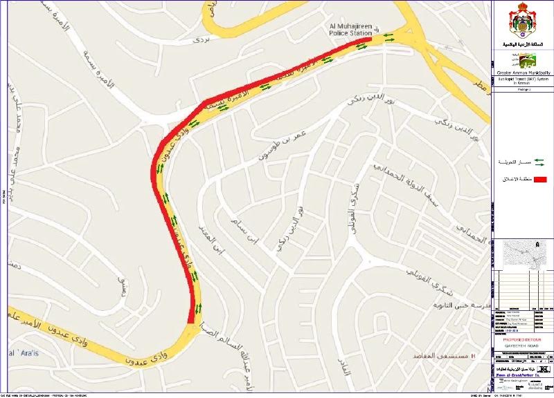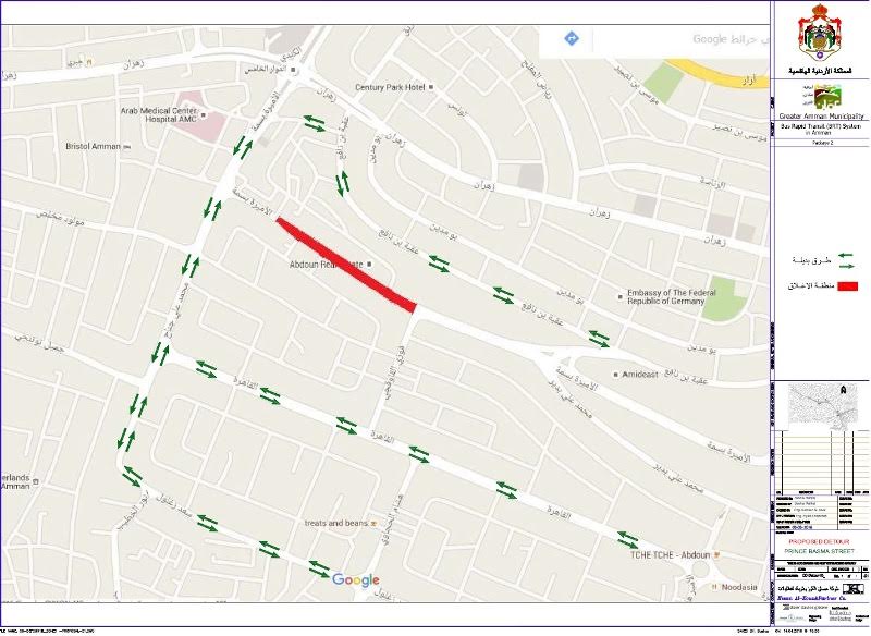 حيث يتطلب سير العمل إغلاق الجزء الاول من شارع الأميرة بسمة ابتداءً من يوم بعد غد الاثنين وذلك لاستكمال اعمال المرحلة الثانية من المشروع ووفقا لبرنامج العمل والبرنامج الزمني المعد لهذه الغاية