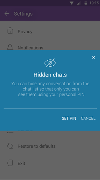 وكجزء من التحديث الجديد، أطلقت فايبر أيضًا ميزة المحادثات المخفية Hidden Chats التي تسمح للمستخدمين بإخفاء محادثات محددة من الشاشة الرئيسية بحيث لا يمكن لأي أحد أن يعلم بوجودها.