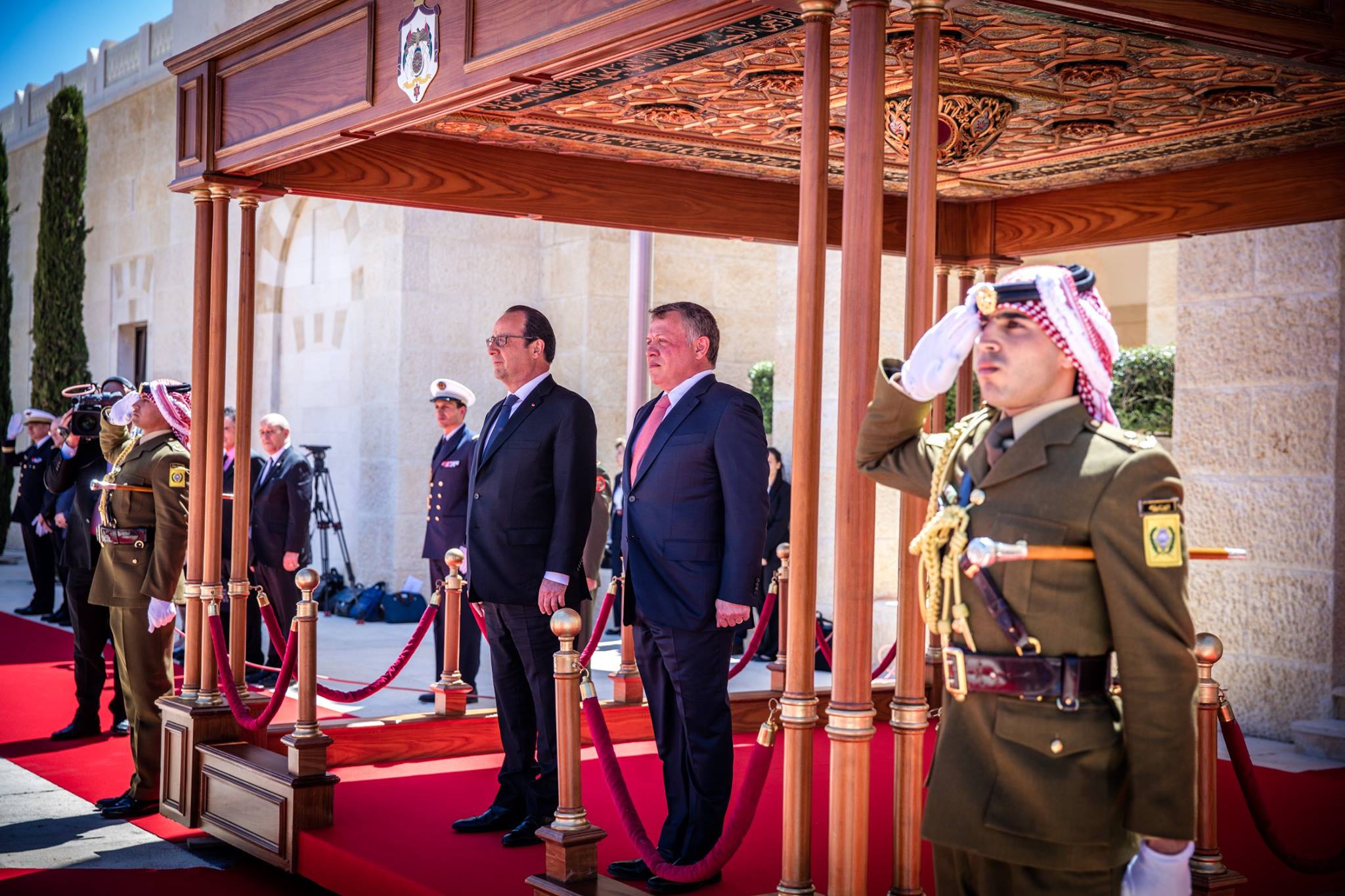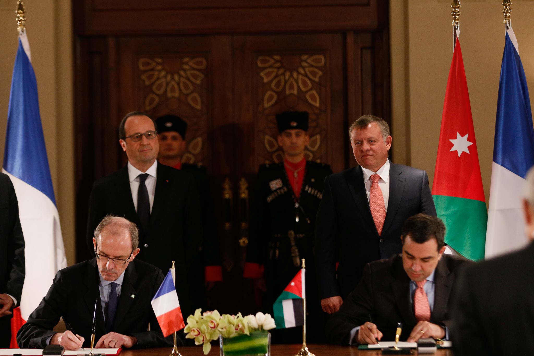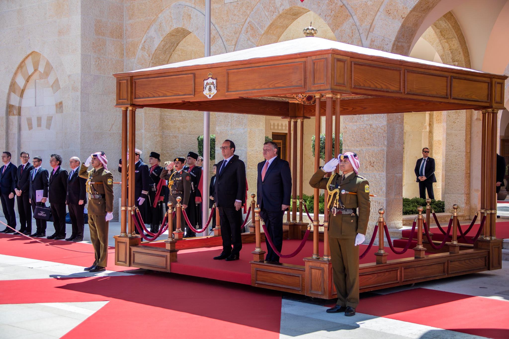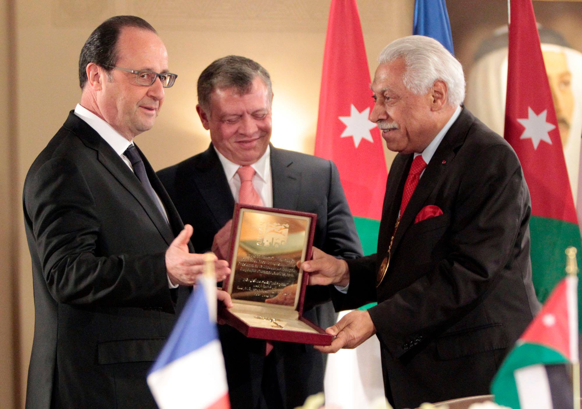 وجرى بحضور جلالة الملك تسليم رئيس الجمهورية الفرنسية، فرانسوا أولاند، "مفتاح عمان"، تأكيدا للعلاقات الراسخة التي تجمع الأردن وفرنسا، وتعزيزا لعلاقات الصداقة التي تربط بينهما.