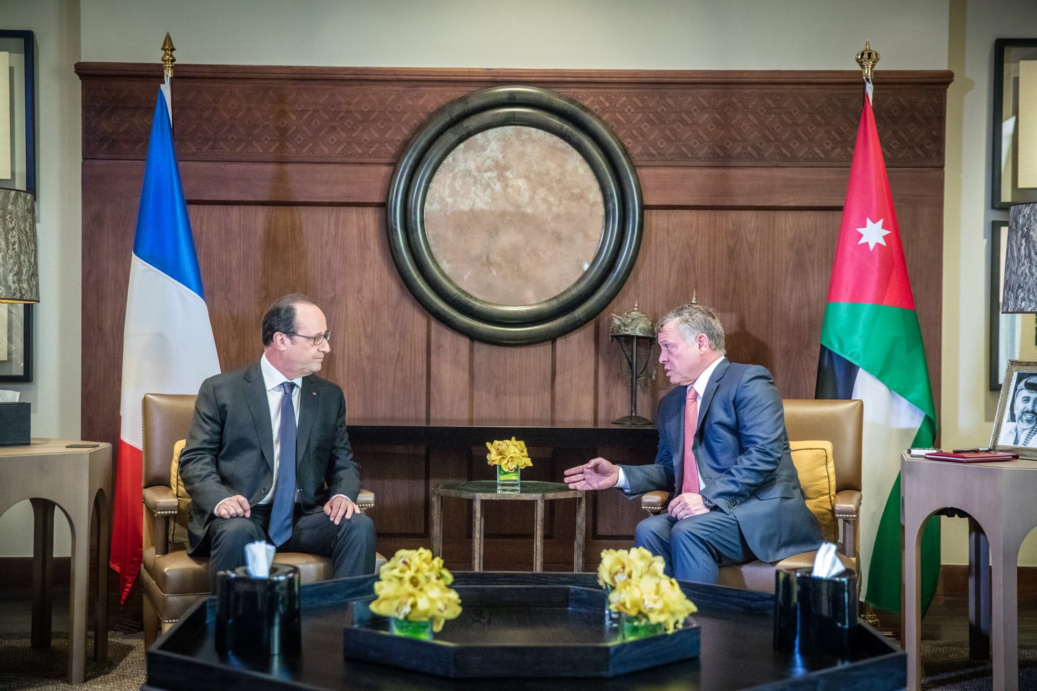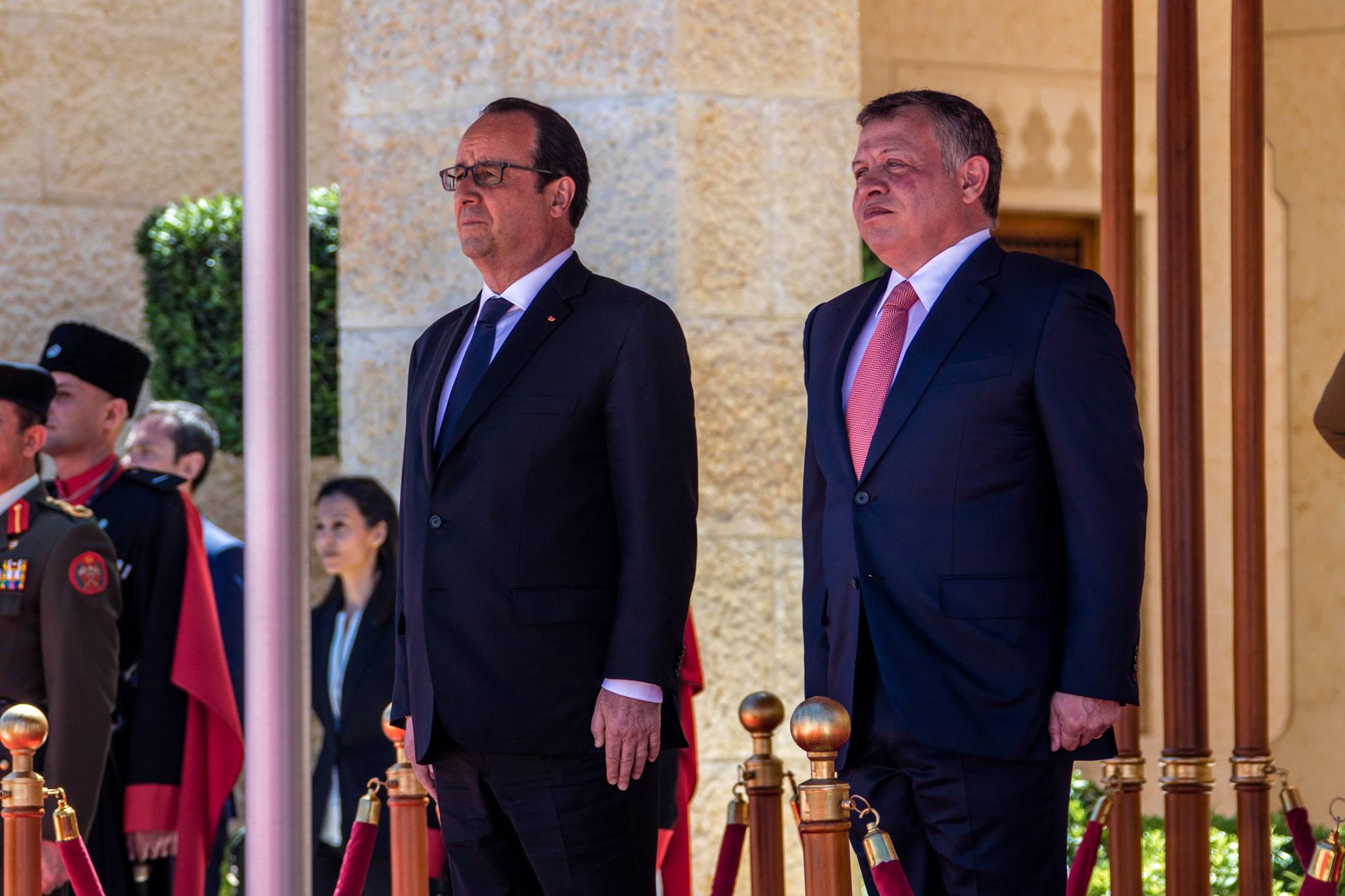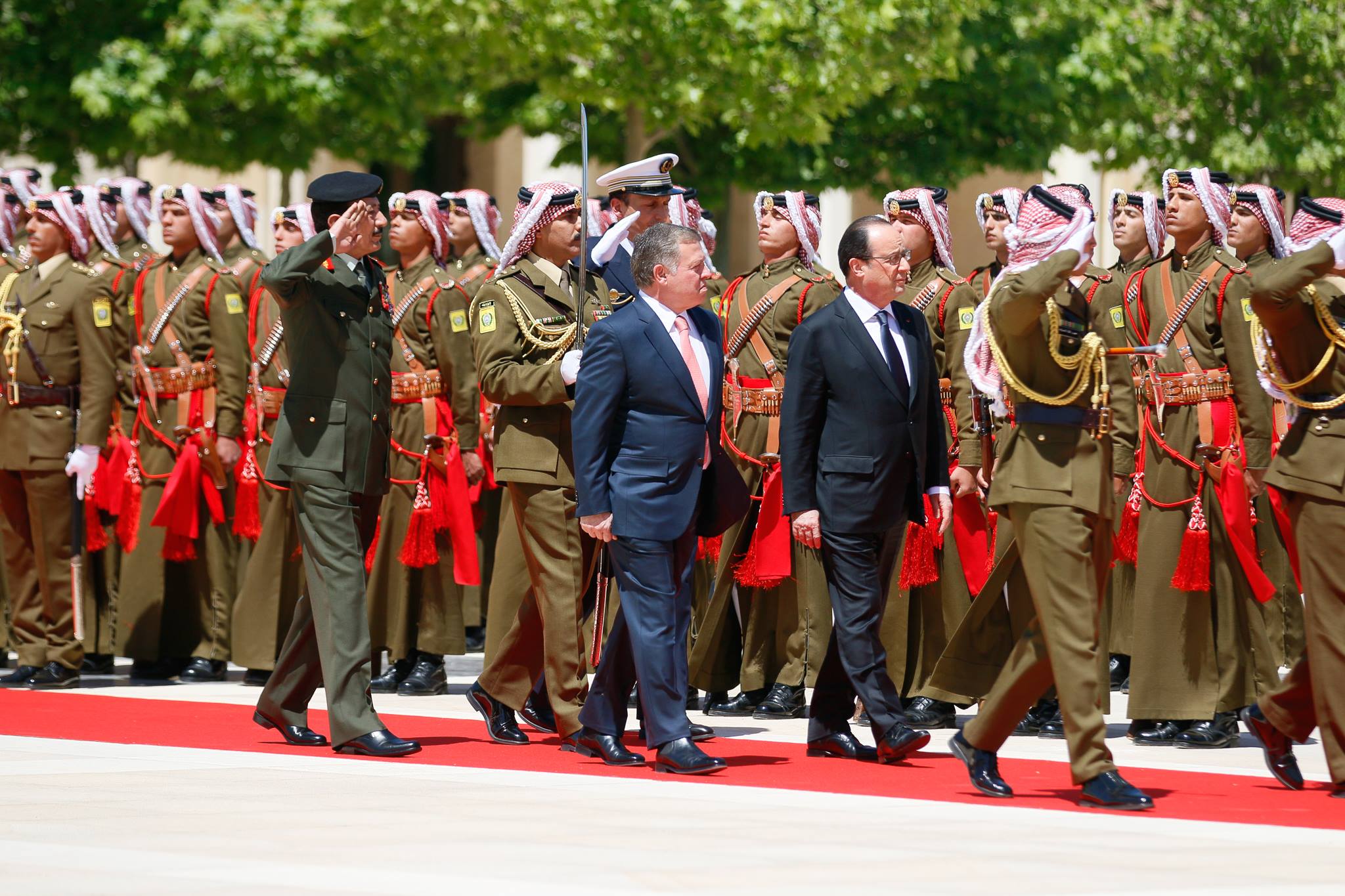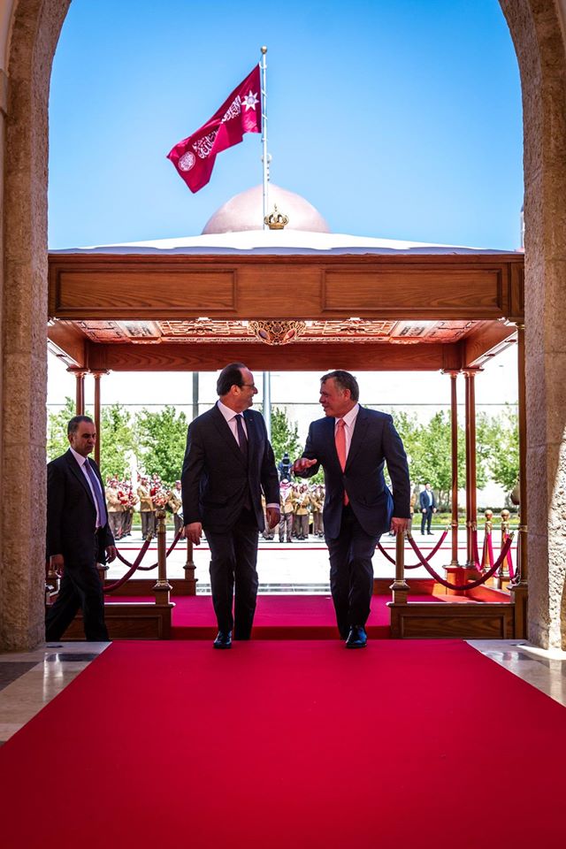 عقد جلالة الملك عبدالله الثاني ورئيس الجمهورية الفرنسية، فرانسوا أولاند، اليوم الثلاثاء، قمة في قصر الحسينية، أكدت متانة علاقات الصداقة والتعاون التي تجمع البلدين، وأهمية تعزيز التشاور والتنسيق والتعاون بينهما في كل ما من شأنه خدمة مصالحهما وشعبيها الصديقين.