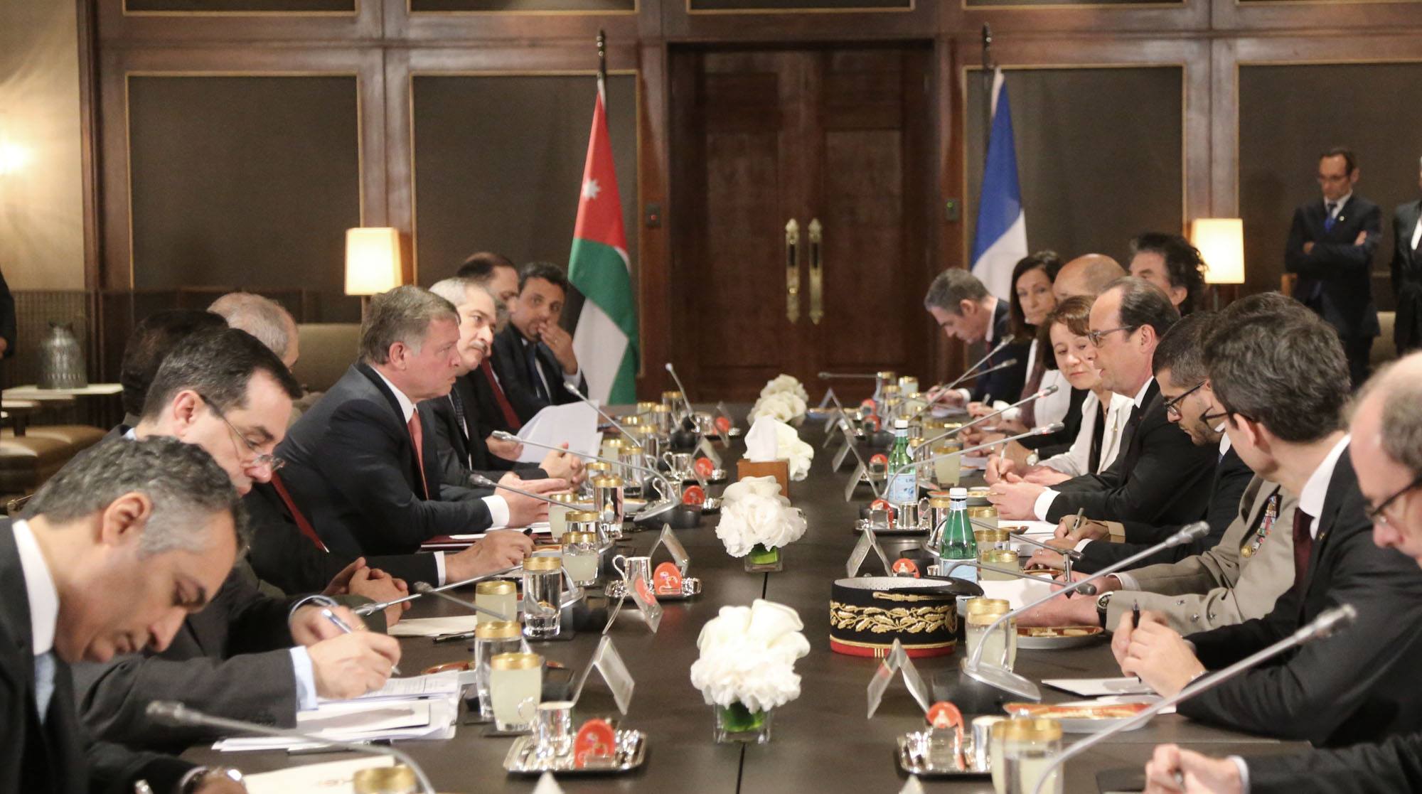 وأكد الرئيس أولاند تفهم بلاده لأعباء اللاجئين السوريين الواقعة على كاهل الأردن، مشددا على أن الأردن قدم "جميع أشكال المساندة لهم، ولا يزال اللاجئون يفدون إليكم من سوريا، هاربين من القتل والدمار في مناطق عديدة، ومنها الرقة وتدمر".