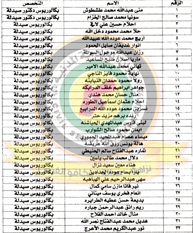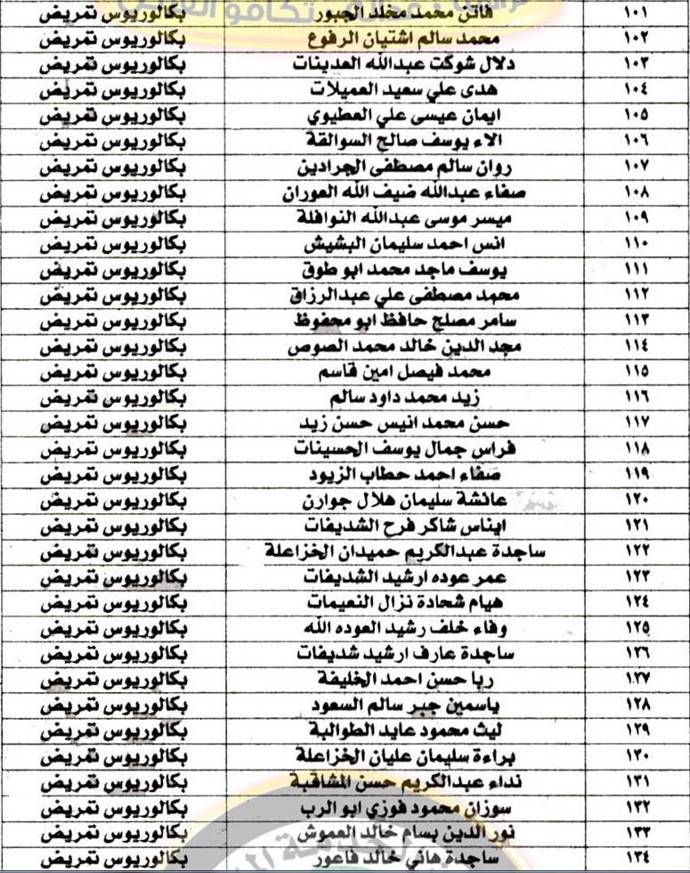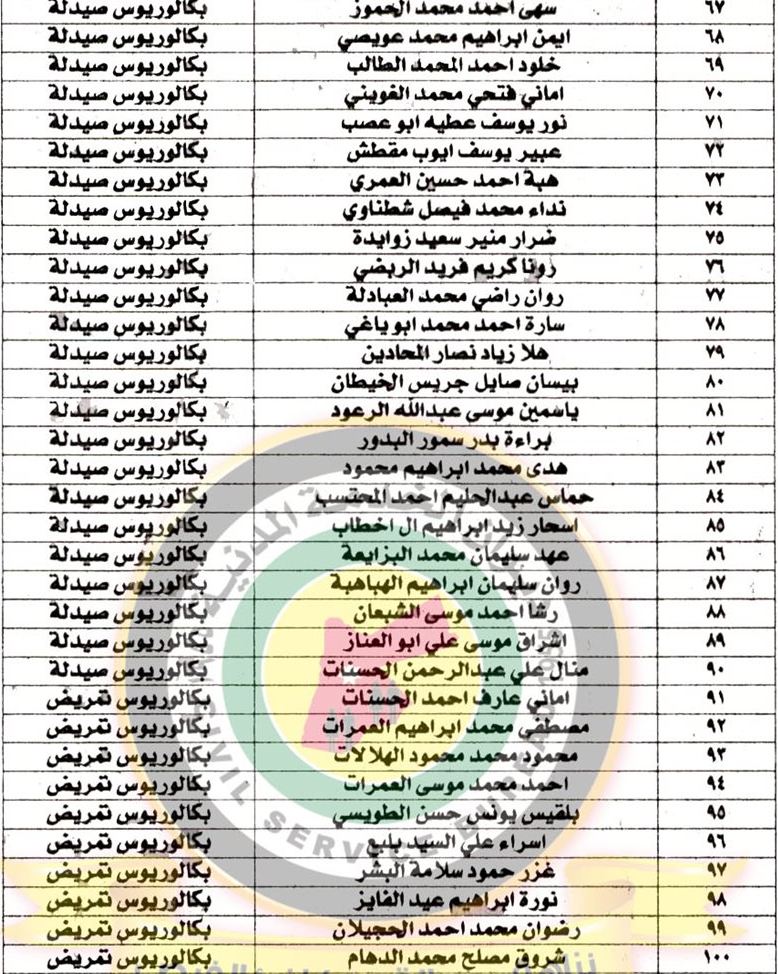 دعت وزارة الصحة التالية أسماؤهم مراجعة مبناها الكائن في طبربور لغايات استكمال اجراءات تعيينهم ولمدة 3 أيام من تاريخه .