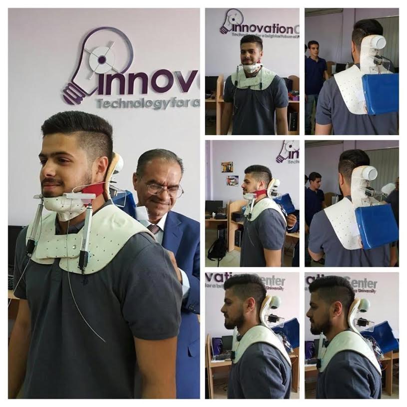 واستطاع الفريق المكون من الطلبة غياث عرقسوسي ومالك بنات وسند برجاوي تحت اشراف السيد عبد الكريم البنا وبالتعاون مع مؤسسات طبية من تصميم جهاز خاص لعلاج "الديسك" في فقرات العنق، بحيث يتمكن الشخص المصاب بالديسك من تحريك رأسه بطريقة صحيحة، كما يقوم الجهاز بجزء هام من وظيفة المعالج الطبيعي في علاج مثل هذه الإصابات.