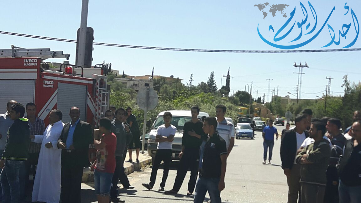 خاص- تعرضت حافلة طلاب " أطفال روضة" تابعة لمدرسة الرشاد النموذجية في مادبا لحادث مروري مروع قرب اشارة حسبان في مادبا ظهر الخميس .