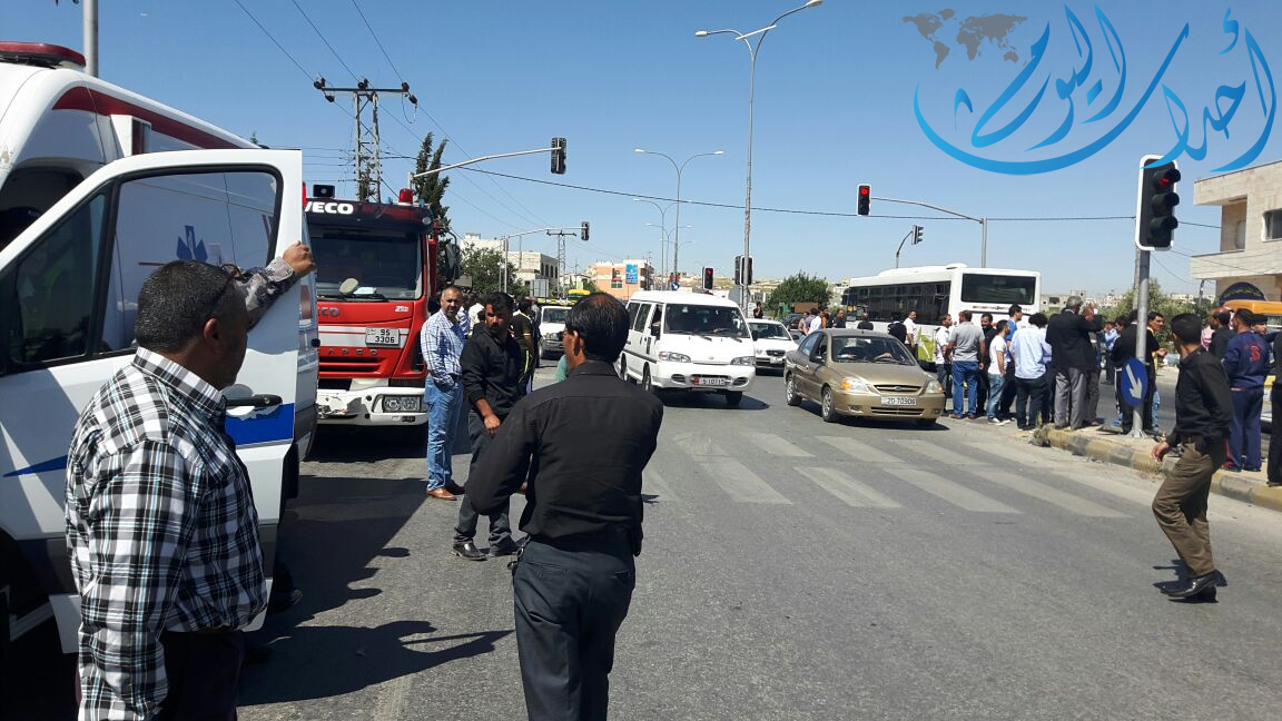 تعاملت فرق الإنقاذ والإسعاف في مديرية دفاع مدني غرب عمان مع حادث تصادم وقع بين أربع مركبات خصوصي و باص مدرسة (كوستر) بمنطقة ناعور/ إشارات بلدية حسبان، نتج عن الحادث إصابة (7) أشخاص برضوض مختلفة في الجسم، حيث قامت فرق الإسعاف بتقديم الإسعافات الأولية اللازمة للمصابين ونقلهم إلى مستشفى النديم ومستشفى المحبة وحالتهم العامة متوسطة .