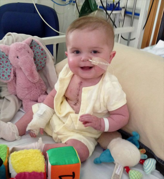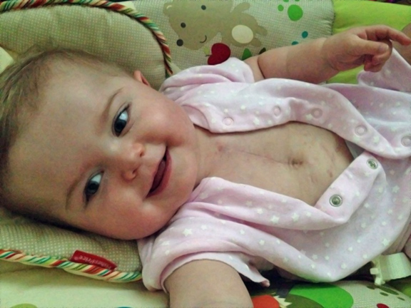 وأبصرت الطفلة النور، رغم مخاوف الأطباء، وكانت في وضع حرج للغاية، واضطر الأطباء لوضع الوالدين أمام خيارين آخرين، وهو ترك الطفلة تموت طبيعيا بعد الولادة، أو إجراء عملية القلب المفتوح، فقررا منحها فرصة ثانية للحياة، وأجروا لها عملية قلب مفتوح بعد الولادة مباشرة، وأجروا لها عملية ثانية وهي في عمر ثلاثة إلى تسع أسابيع.