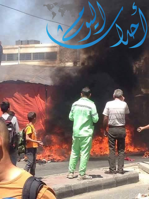خاص - أقدم عدد من أصحاب البسطات في مخيم الوحدات على احراق بضائعهم احتجاجا على اجراءات أمانة عمان الكبرى لإزالة بسطاتهم العشوائية .